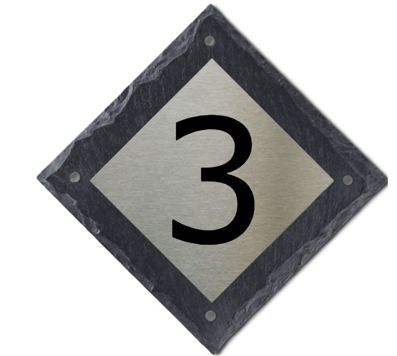 Leisteen huisnummerplaat met Rvs voorplaat
