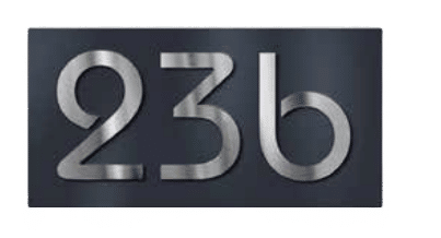 Rvs cijfers op zwart acrylaatplaat. De rvs cijfers of letter zijn opliggend.