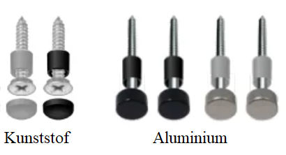 De Rvs huisnummerplaten zijn standaard voorzien van gaten. U kunt zwart of zilver aluminium / kunststof dopjes bijbestellen.