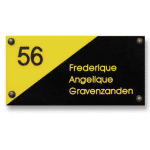 Je kunt dit naambord volledig naar eigen wens personaliseren. Voeg tot zes regels tekst toe, bijvoorbeeld je huisnummer en naam, en kies uit verschillende lettertypes en kleuren. Of je nu kiest voor een strakke, moderne uitstraling of juist een klassieke look wilt creëren, met de beschikbare opties maak je jouw naambord helemaal uniek. De tekst wordt zorgvuldig gegraveerd en ingelakt, zodat deze jarenlang mooi blijft.