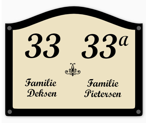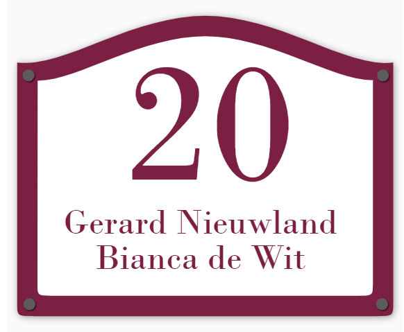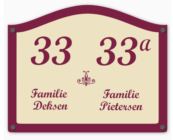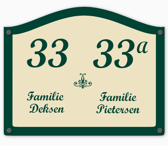 Een van de mooiste dingen van ons budget voordeurbord is de mogelijkheid om het volledig te personaliseren. Je kunt jouw naam, huisnummer of zelfs een leuke tekst op het bord laten drukken. Met verschillende lettertypes, kleuren en ornamenten (A, B of C) kies je helemaal zelf hoe jouw bord eruit komt te zien. Voeg eventueel een boorgaatje toe voor de bevestiging, volledig gratis!