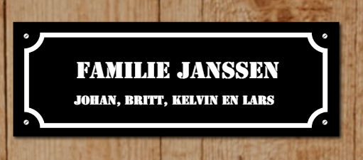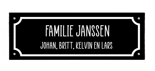 Een van de grootste voordelen van onze emaille look naambordjes is dat je ze volledig kunt personaliseren. Of je nu een naam, huisnummer of een leuke tekst wilt, wij helpen je graag om het perfecte bord te creëren. Met diverse lettertypen, kleuren en layout-opties kun je het bord helemaal afstemmen op jouw stijl. Kies bijvoorbeeld voor een elegant zwart bord met witte tekst of ga voor een frisse blauwe uitstraling. Maak je keuze en geef je voordeur een echt persoonlijk tintje!