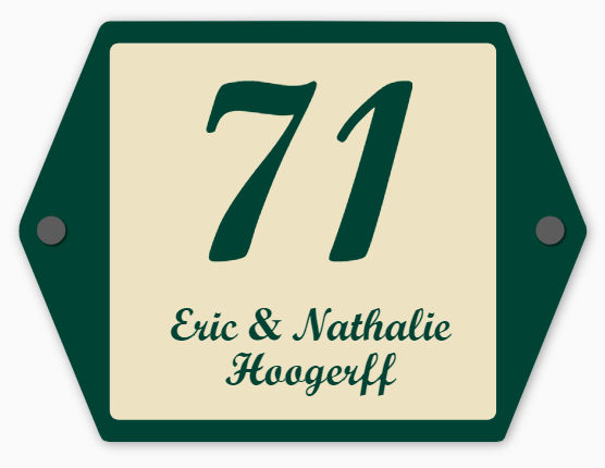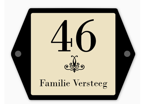 Bij ons heb je de vrijheid om het bord helemaal naar eigen smaak te maken. Kies uit verschillende lettertypen zoals Bodoni MT, Copperplate of Script MT Bold. Of je nu je naam, huisnummer of een speciale tekst wilt toevoegen, alles is mogelijk!