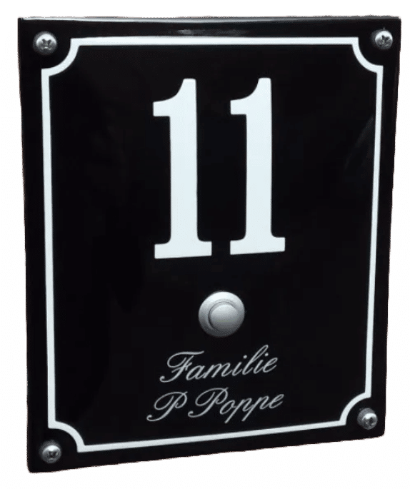 Op zoek naar een prachtig en uniek naambord voor bij je voordeur? Dan is ons emaille naambord met bel precies wat je zoekt! Dit naambord heeft een middelgroot formaat van 16 x 19 cm en combineert functionaliteit met stijlvolle uitstraling. Het nostalgische ontwerp in jaren 30-stijl maakt dit bord niet alleen herkenbaar, maar ook een echte eyecatcher.