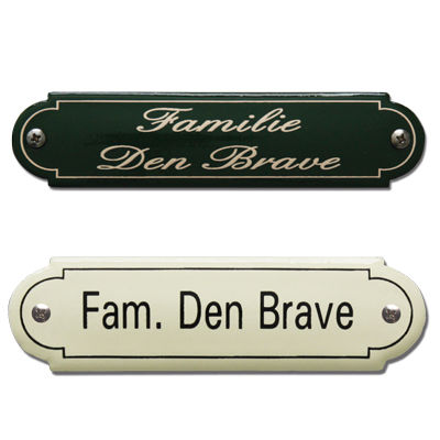Emaille naamplaatje klassiek - afmetingen 8 x 2,2 cm & 11,5 x 2,7 cm