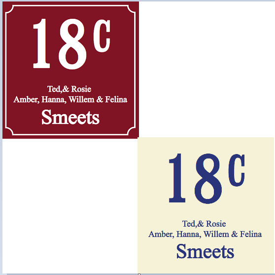 Vierkante naamplaat Emaille in de afmetingen 20 x 20 cm, 25 x 25 cm en 30 x 30 cm