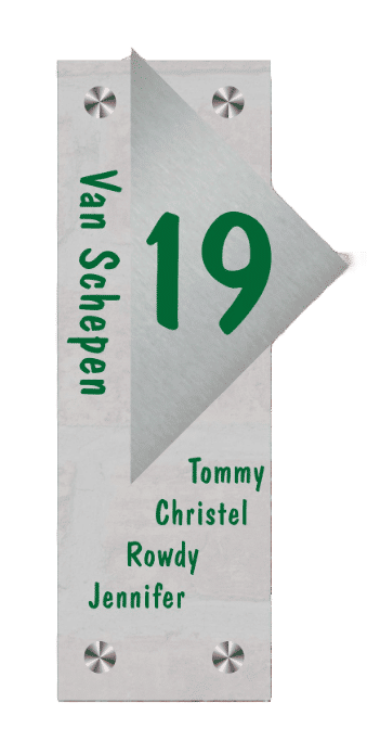 Je hebt de mogelijkheid om het naambord volledig te personaliseren. Kies uit verschillende tekstkleuren en lettertypen om het naambord helemaal naar jouw wens te maken. Wil je een voorbeeld zien voordat je de uiteindelijke beslissing neemt? Vink dan de optie "Ik wil graag vooraf een voorbeeld ontvangen" aan tijdens je bestelling. We sturen je een digitaal voorbeeld zodat je zeker weet dat alles naar wens is voordat we in productie gaan.