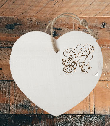 Vier een bijzondere gelegenheid met ons charmante hartvormige naambord, versierd met een ooievaar en je eigen tekst. Dit prachtige houten hart heeft een afmeting van 18 x 16 cm en is 2 cm dik, waardoor het een stevig en indrukwekkend cadeau is. Het hout is voorzien van een witte coating die zorgt voor een strakke en moderne uitstraling van je gravure.