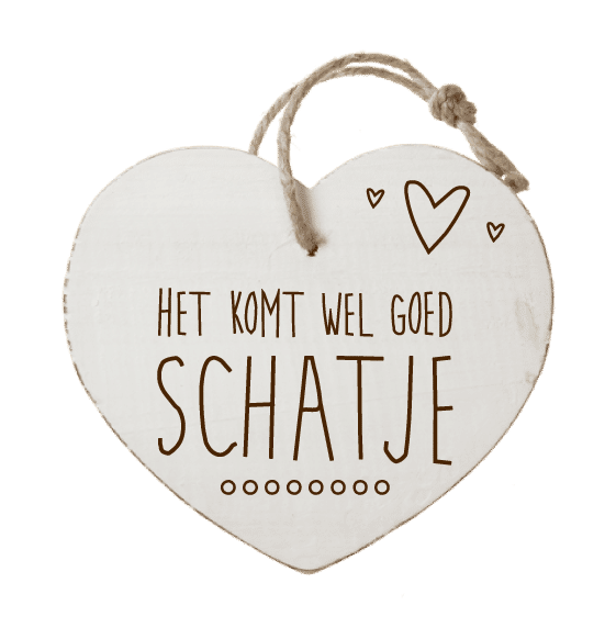 Houten hartenwens 'Het komt wel goed schatje' – 18 x 16 cm