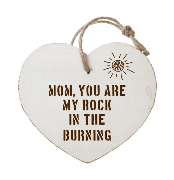 Houten hartenwens 'Rock in the burning' – 18 x 16 cm voor een warm gebaar