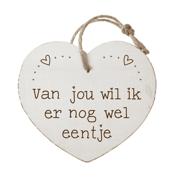 Laat een blijvende indruk achter met ons houten hart met de tekst 'Van jou wil ik...'. Dit charmante hart, met een afmeting van 18 x 16 cm en een dikte van 2 cm, is perfect om een speciaal gevoel over te brengen. Het is gemaakt van hout dat is voorzien van een witte coating en met precisie gegraveerd door middel van lasergraveren, waardoor de tekst helder en duurzaam blijft.