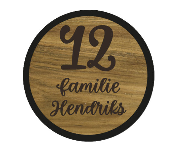 Rond naambord van teakhout (Ø 20)