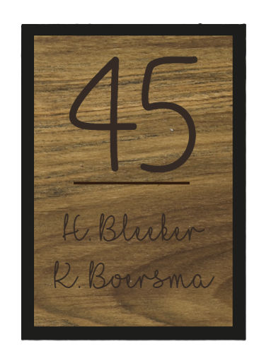 Teakhout naamplaat voor de voordeur - Afmetingen: 17 x 24 cm
