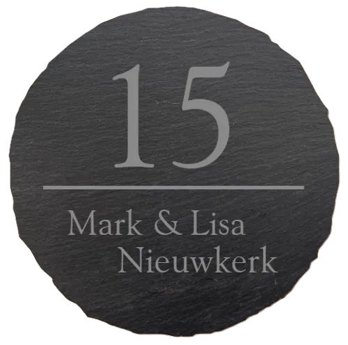 Geef je woning of bedrijf een unieke uitstraling met ons goedkope leistenen naambord van ø 30! Dit stijlvolle bord is niet alleen een fraaie toevoeging aan je gevel, maar ook een duurzame keuze. Gemaakt van natuursteen, zorgt iedere steen voor een authentiek karakter dat je nergens anders vindt. Met zijn antracietkleurige bord en lichtgrijze tekst zorgt het naambord ervoor dat je bezoekers altijd welkom zijn.