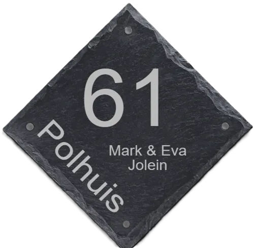 Leisteen is niet zomaar een materiaal; het is een natuursteen dat bekend staat om zijn duurzaamheid en weerbestendigheid. Hierdoor is het naambord perfect geschikt voor buitengebruik. Of het nu regent of in de zon staat, jouw leisteen naambord blijft er geweldig uitzien. Dankzij onze hoogwaardige lasergraveertechniek is de tekst bovendien scherp en duidelijk, waardoor deze goed leesbaar is vanaf een afstand.