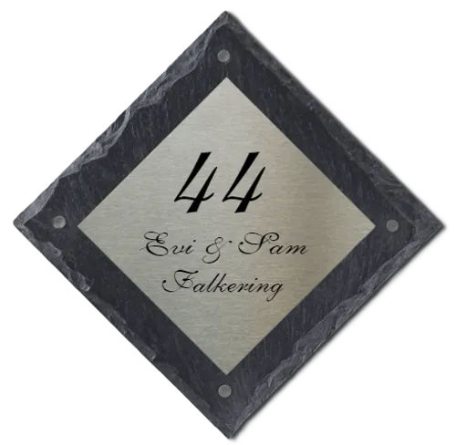 Voordeur bord leisteen met RVS naambord - 17 x 17 cm