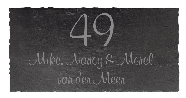 Een van de grote voordelen van onze leistenen naamborden is de mogelijkheid om ze volledig naar jouw wens te personaliseren. Je kunt kiezen uit diverse lettertypen, zoals Arial Narrow of Times New Roman, en wij lasergraveren jouw gewenste tekst met precisie. Bij de bestelling geef je eenvoudig je voorkeuren door, en na het plaatsen van je bestelling ontvang je de kans om een voorbeeld te bekijken. Dit zorgt ervoor dat je helemaal tevreden bent voordat we doorgaan met de productie!