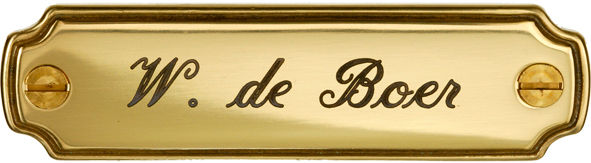 | Onderhoud | Wij raden u aan het naambord met een zachte doek te poetsen met een koperpoets (Bijvoorbeeld met Brasso) |