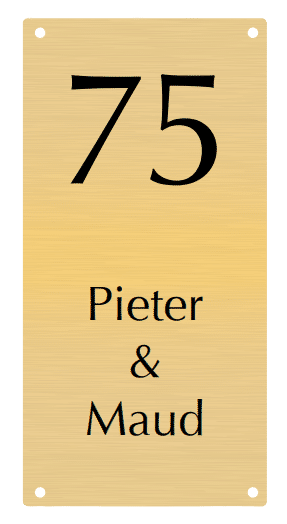 Het Naambord Goud messing met een afmeting van 15 x 30 cm straalt luxe en duurzaamheid uit. Dit naambord is gemaakt van hoogwaardig messing, een materiaal dat bekend staat om zijn weerbestendigheid en lange levensduur. De gouden glans van het messing geeft uw pand een klassieke en chique uitstraling, perfect voor zowel woningen als bedrijven die een vleugje elegantie willen toevoegen aan hun gevel.