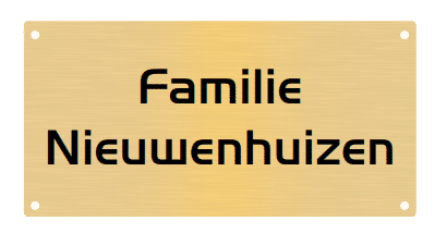 Maak dit naambord volledig naar uw wens met diverse personalisatie-opties. U kunt tot vijf regels tekst toevoegen en kiezen uit verschillende lettertypes zoals Arial, Monotype Corsiva, of Times New Roman. Daarnaast heeft u de keuze uit diverse tekstkleuren, waaronder zwart, donkerblauw en bordeaux, om precies de uitstraling te bereiken die u voor ogen heeft. Of u nu gaat voor een traditionele of moderne look, dit koperen naambord biedt de flexibiliteit om aan uw wensen te voldoen.