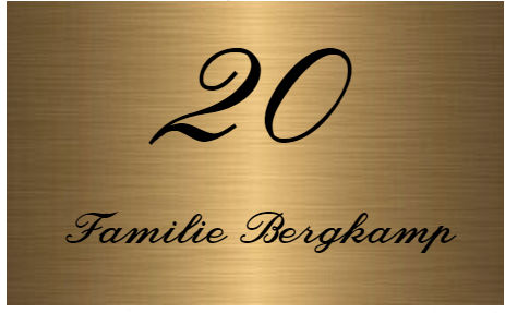Je kunt de tekst op het bord volledig zelf bepalen. Of je nu je naam, huisnummer, of misschien wel een leuke quote wilt laten graveren, de keuzes zijn eindeloos. Kies ook het gewenste lettertype uit onze ruime selectie, zoals het klassieke Times New Roman of het speelse Comic Sans MS. En wat dacht je van de kleur? Je kunt kiezen uit een goud look met zwarte tekst of een zilver look met zwarte tekst; beide opties zorgen voor een chique uitstraling.