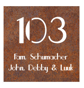 Cortenstaal naamplaat look - 15 x 15 cm