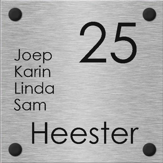 Rvs look naambord de luxe - Afmeting 20 x 20 cm