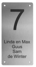 Een langwerpige naamplaat naast de voordeur maakt je huis compleet! Er zijn veel verschillende stijlen en kleuren beschikbaar als het gaat om langwerpige naamplaten. Dit bord heeft een afmeting van 12 x 24 cm | 15 x 30 cm. Je kunt dan ook 6 tekstregels vullen. Je bepaalt zelf wat voor tekst je wilt. En voor € 72,00 heb je binnen 2 tot 5 dagen een fantastisch bordje naast de deur hangen! Een echte must have voor jouw woning!