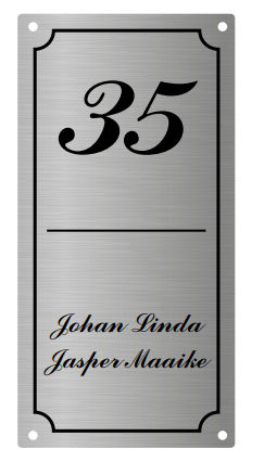 Onze luxe rvs naamplaten zijn van goede kwaliteit. We bieden vele soorten en ieder luxe rvs naamplaat kun je personaliseren. Er zijn tal van mogelijkheden. Variërend van bordkleur tot tekstkleur, van lettertype tot uitlijning. Dit bordje is 10 x 20 cm | 12 x 24 cm | 15 x 30 cm en je kunt er 7 regels aan tekst kwijt! Een rvs naambord naast de voordeur, met of zonder huisnummer, zal er geweldig uitzien. En je hebt 'm binnen 2 tot 5 dagen al binnen!