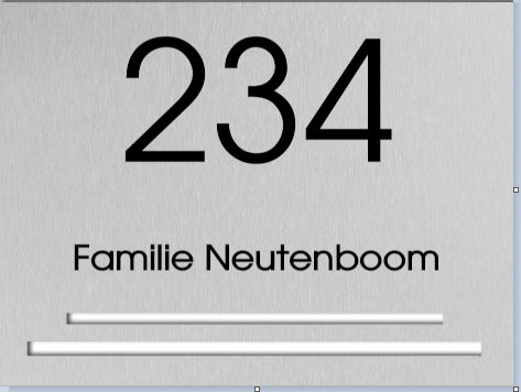 Onze rvs naamborden zijn van goede kwaliteit. We bieden vele soorten en ieder rvs naambord kun je personaliseren. Er zijn tal van mogelijkheden. Variërend van bordkleur tot tekstkleur, van lettertype tot uitlijning. Dit bordje is 20 x 15 cm en je kunt er 8 regels aan tekst kwijt! Een rvs naambord naast de voordeur, met of zonder huisnummer, zal er geweldig uitzien. En je hebt 'm binnen 2 tot 5 dagen al binnen!