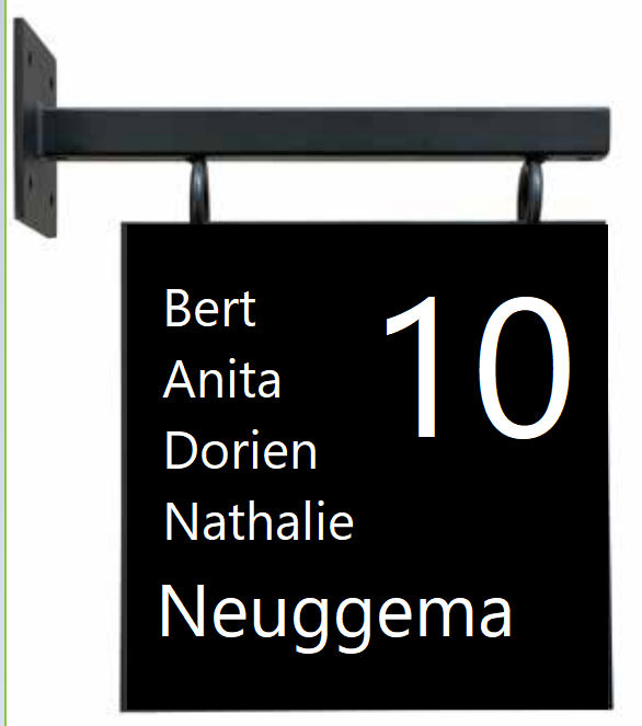 Zoek je een uithangbord die je naar wens kunt indelen? Onze naamborden zijn zeer geschikt om te personaliseren. Dit bordje kent een afmeting van 30 x 30 cm. Voeg je eigen tekst toe en creëer een modern uithangbord volledig naar wens. Je kunt op dit uithangbordje 8 regels aan tekst plaatsen. Het op maat gemaakte en unieke voordeurbordje heb je binnen 5 dagen in huis.