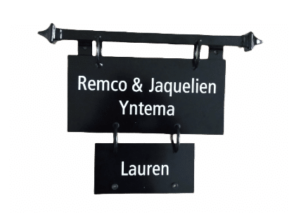 Jouw wensen staan voorop! Geef bij de bestelling eenvoudig de tekst door die je op het bord wilt laten plaatsen. We hebben verschillende lettertypen voor je beschikbaar, zodat je het bord een persoonlijke touch kunt geven. Of je nu een huisnummer of een naam wilt laten weergeven, met onze opties ben je verzekerd van een uniek ontwerp. Op de volgbordjes heeft u de mogelijkhed de namen van de kinderen of een andere tekst te plaatsen.