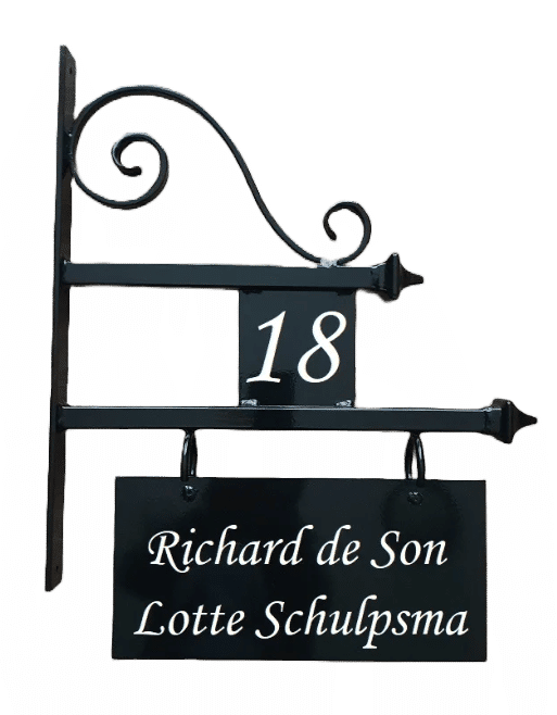 De uithangborden worden ambachtelijk vervaardigd en zijn vervaardigd van hoogwaardig materiaal dat bestand is tegen alle weersomstandigheden. Dankzij het poedercoatingproces is het bord niet alleen smakelijk afgewerkt, maar ook beschermd tegen roest en krassen. Je hebt de keuze uit diverse kleuren zoals zwart of groen, met tekstkleuren in wit of crème. Dit zorgt ervoor dat het bord perfect aansluit bij jouw persoonlijke stijl.