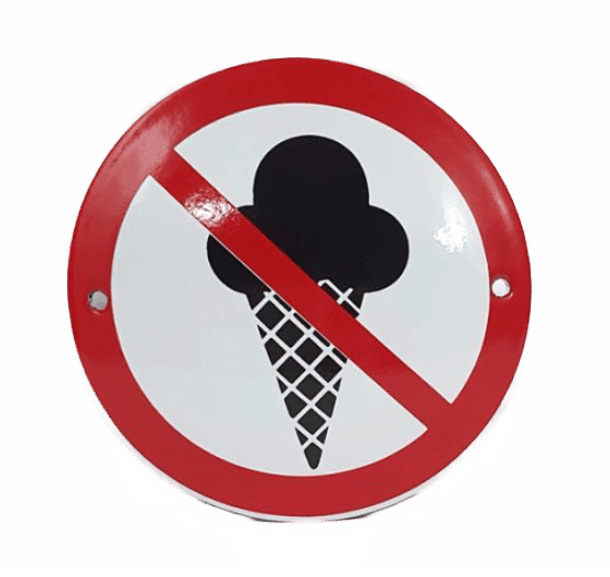 Rond Verbodsbord: Verboden ijs te eten.