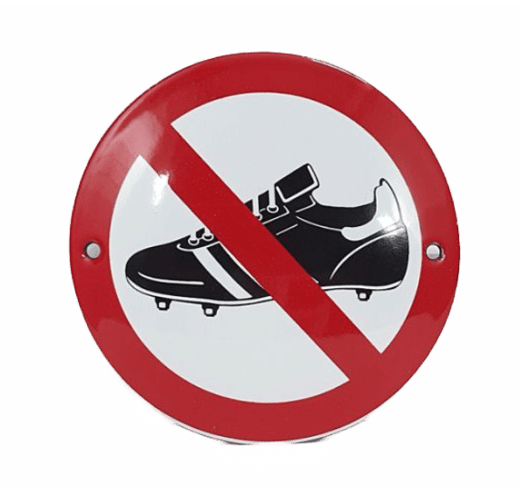 Emaille Verbodsbord : Verboden met Voetbalschoenen