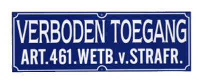 Goedkoop tekstbord Verboden Toegang artikel 461 Wetboek van strafrecht