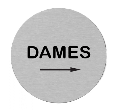 RVS ronde pictogram Dames Toilet | Pijl wijzend naar Rechts.