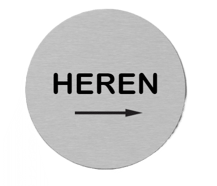Pictogram HEREN Toilet | Pijl wijzend naar Rechts | RVS | Opdruk zwart | Lasertechniek | Zelfklevend