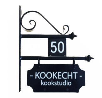 Bedrijfsborden-Uithangborden zwart met huisnummer vak | Diverse lettertypes | Twee kanten Tekst |